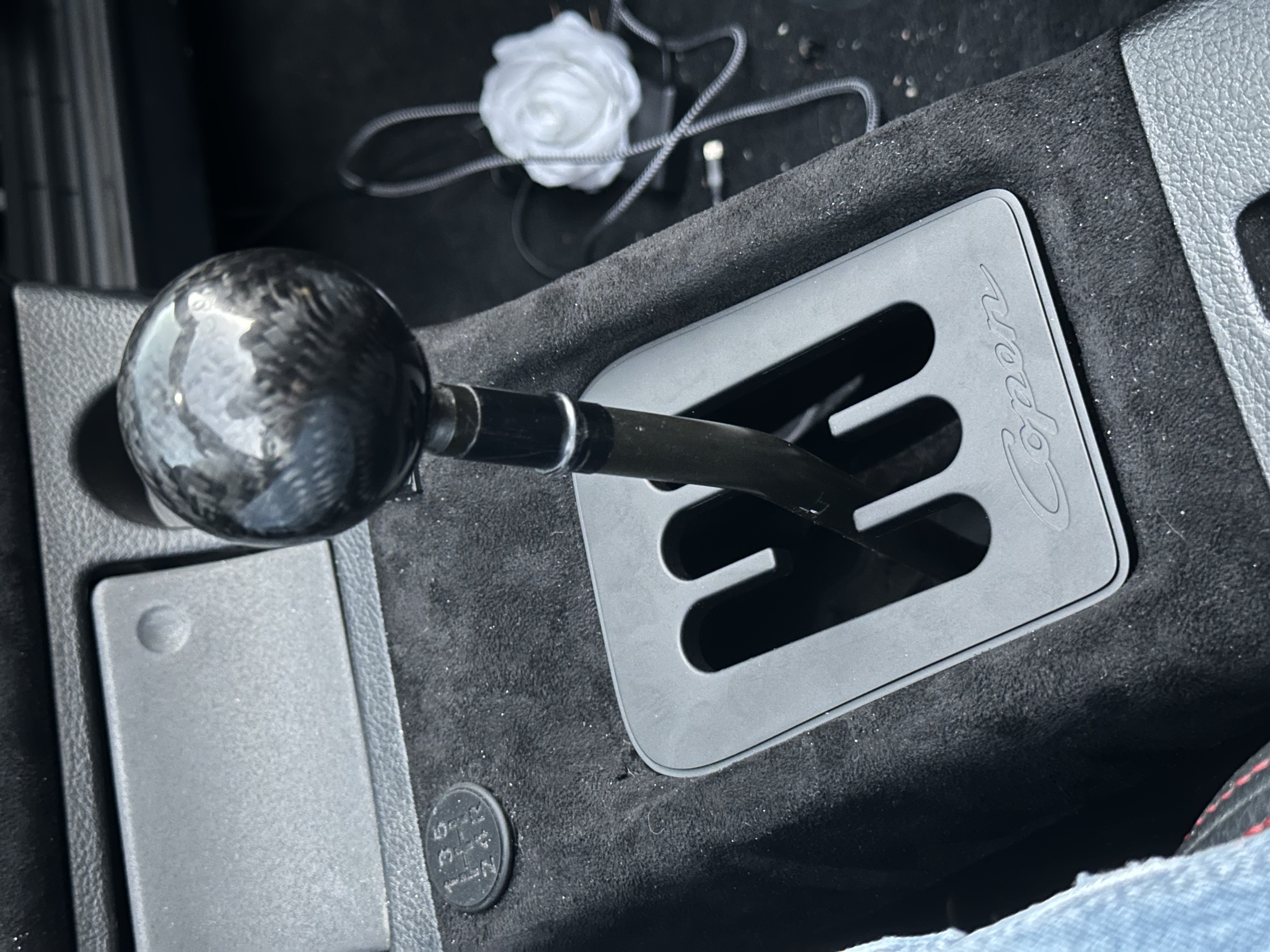 It’s machined from solid aluminum, anodized black for durability, and designed to press-fit directly onto the original shift console without modification (gluing it from behind is strongly reccomended to avoid risk of unmatching it from the base during strong gear shifting and to highly improve perceived feeling).