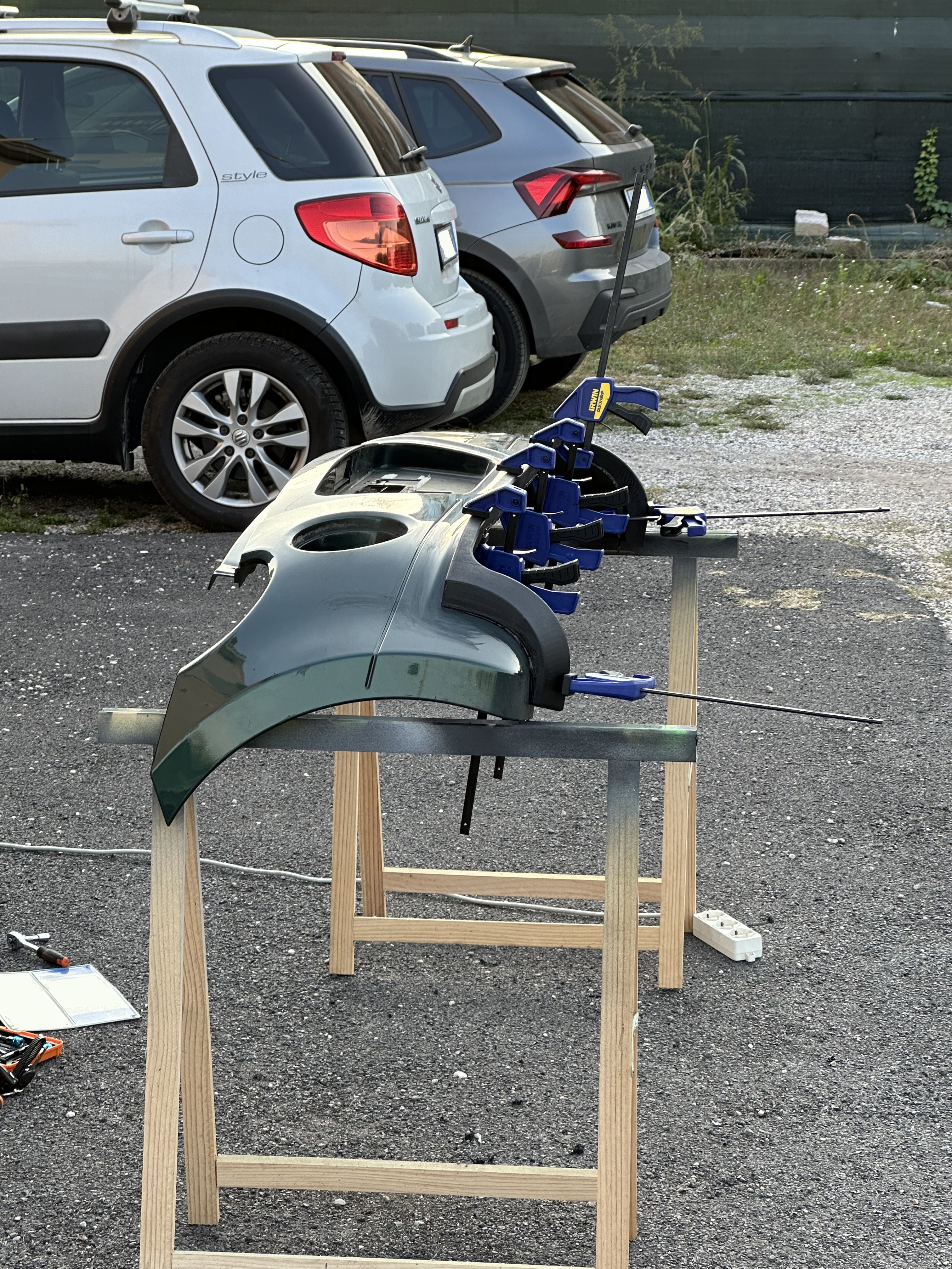 You can attach it to your car using silicone-based materials. You must use clamps and a strong weather resistant adhesive, otherwise it will warp back and detach from the original back bumper.